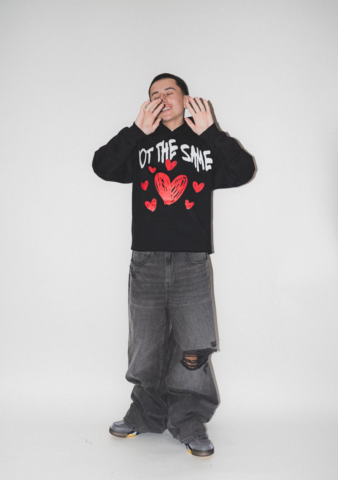 Cropped, baggy, & true to size. Size up for oversized look.